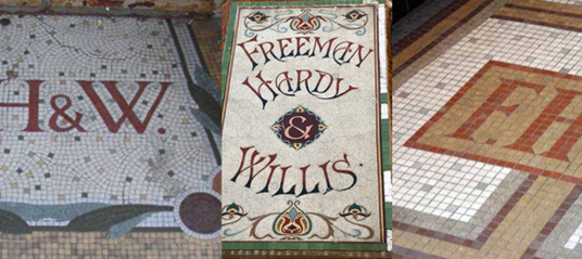 Despite the closure of the final store in 1996 signs of Freeman Hardy & Willis’s historical footprint in the UK in the form of ‘FHW’ entrance lobby mosaics, painted walls and the wall mosaic in Hitchen.